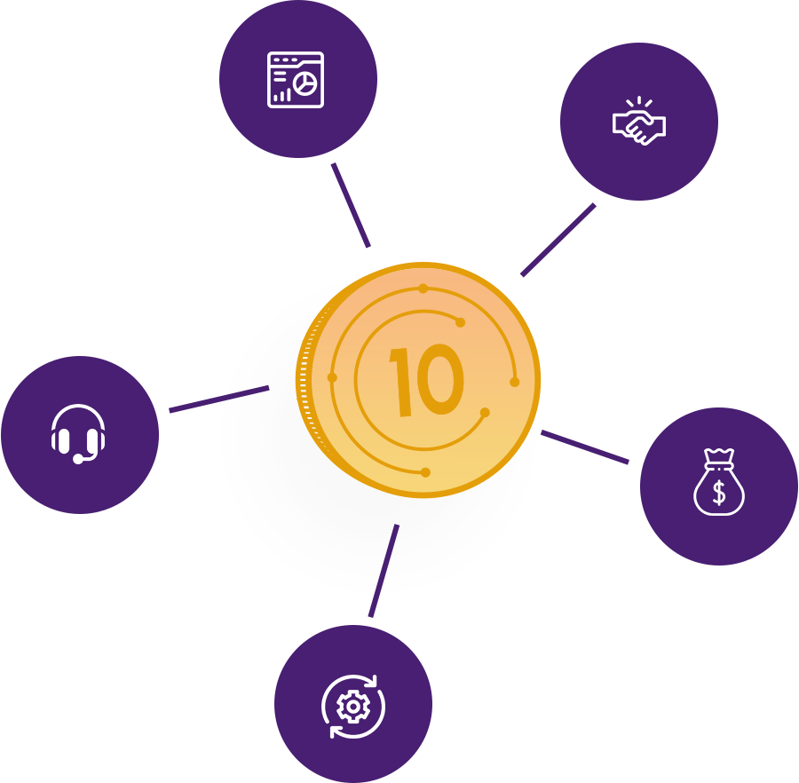 Get startedWe are crypto enthusiasts sharing vast knowledge in competitive online sectors. We built 10 Coins to solve problems we faced when processing high volumes online - our product offers unique solution that can help businesses grow effectively and safely into the crypto space.